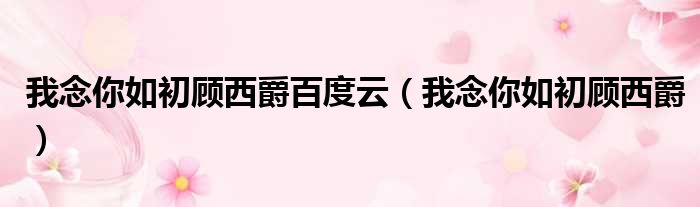 大家好,小东方来为大家解答以上的问题。我念你如初顾西爵百度云,我念你如初顾西爵这个很多人还不知道,现在让我们一起来看看吧!
