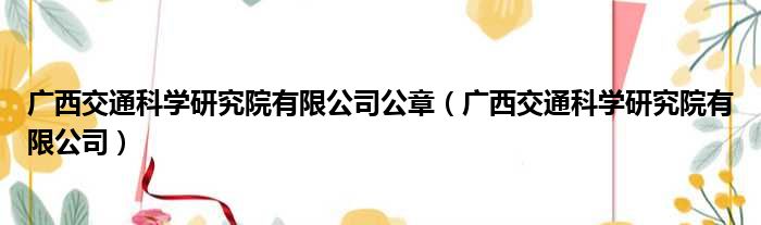 广西交通科学研究院有限公司公章(广西交通科学研究院有限公司)