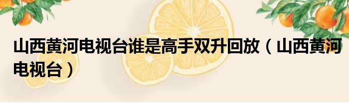 大家好,小东方来为大家解答以上的问题。山西黄河电视台谁是高手双升回放,山西黄河电视台这个很多人还不知道,现在让我们一起来看看吧!