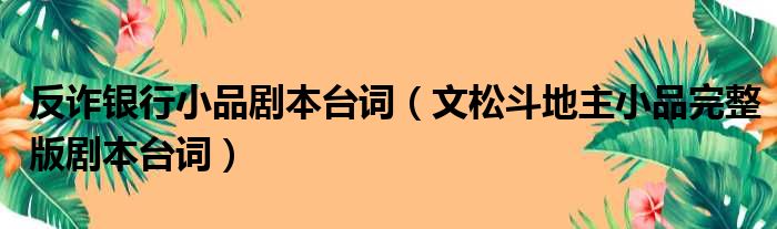 反诈银行小品剧本台词(文松斗地主小品完整版剧本台词)
