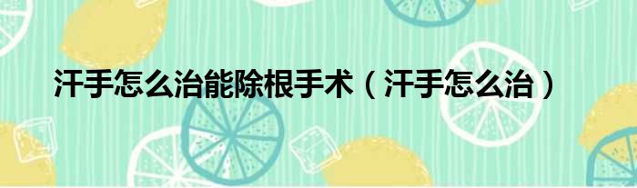 大家好,小东方来为大家解答以上的问题。汗手怎么治能除根手术,汗手怎么治这个很多人还不知道,现在让我们一起来看看吧!