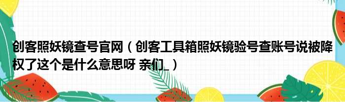 创客照妖镜查号官网(创客工具箱照妖镜验号查账号说被降权了这个是什么意思呀 亲们_)