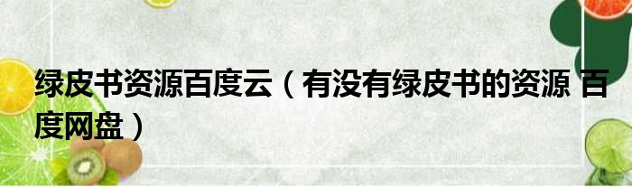 绿皮书资源百度云(有没有绿皮书的资源 百度网盘)
