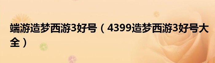 端游造梦西游3好号(4399造梦西游3好号大全)