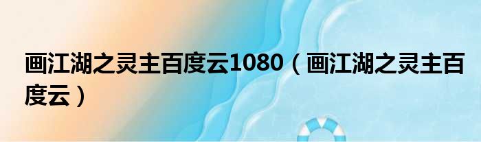 大家好,小东方来为大家解答以上的问题。画江湖之灵主百度云1080,画江湖之灵主百度云这个很多人还不知道,现在让我们一起来看看吧!