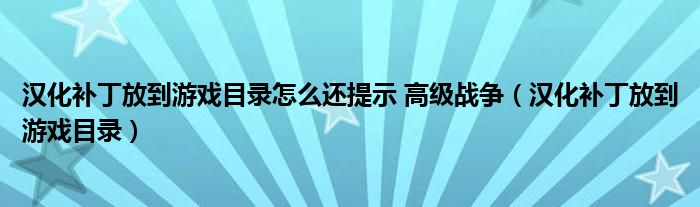 汉化补丁放到游戏目录怎么还提示 高级战争(汉化补丁放到游戏目录)