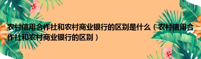 农村信用合作社和农村商业银行的区别是什么(农村信用合作社和农村商业银行的区别)