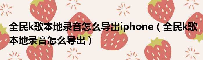 全民k歌本地录音怎么导出iphone(全民k歌本地录音怎么导出)