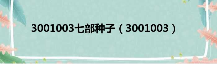 大家好,小东方来为大家解答以上的问题。3001003七部种子,3001003这个很多人还不知道,现在让我们一起来看看吧!