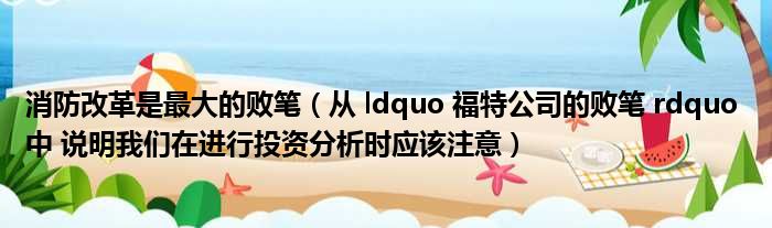 消防改革是最大的败笔(从 ldquo 福特公司的败笔 rdquo 中 说明我们在进行投资分析时应该注意)