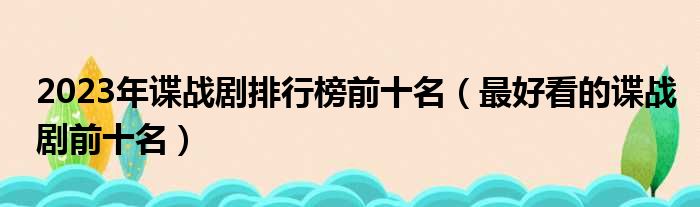 大家好,小东方来为大家解答以上的问题。2023年谍战剧排行榜前十名,最好看的谍战剧前十名这个很多人还不知道,现在让我们一起来看看吧!