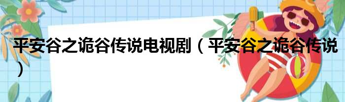 平安谷之诡谷传说电视剧(平安谷之诡谷传说)