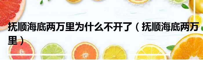 抚顺海底两万里为什么不开了(抚顺海底两万里)