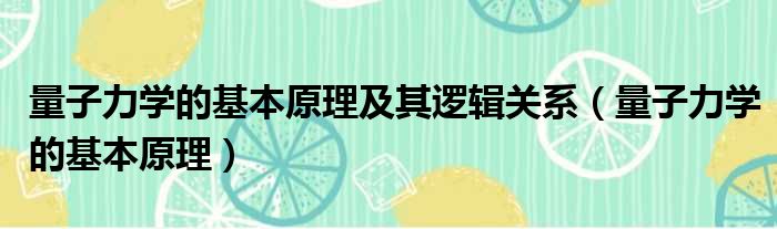 量子力学的基本原理及其逻辑关系(量子力学的基本原理)