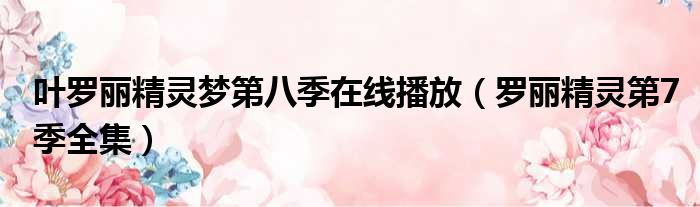 叶罗丽精灵梦第八季在线播放(罗丽精灵第7季全集)