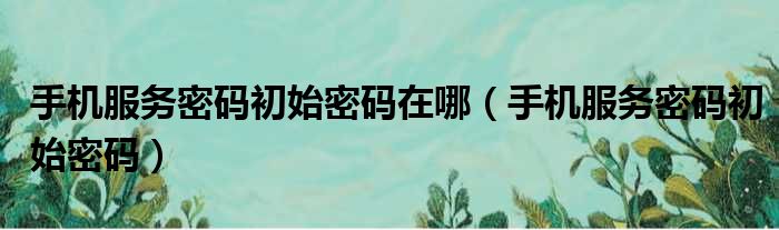 手机服务密码初始密码在哪(手机服务密码初始密码)