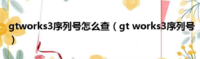 导读 大家好,小东方来为大家解答以上的问题。gtworks3序列号怎么查,gt works3序列号这个很多人还不知道,现在让我们一起来看看吧!1、是不是GS