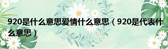 导读 大家好,小东方来为大家解答以上的问题。920是什么意思爱情什么意思,920是代表什么意思这个很多人还不知道,现在让我们一起来看看吧!1、920