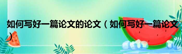 如何写好一篇论文的论文(如何写好一篇论文)