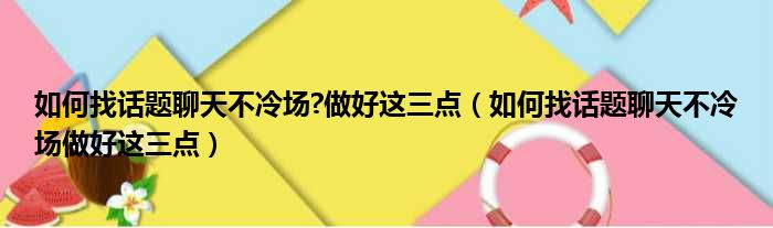 如何找话题聊天不冷场?做好这三点(如何找话题聊天不冷场做好这三点)