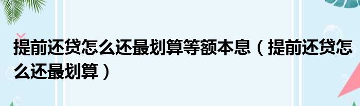 提前还贷怎么还最划算等额本息(提前还贷怎么还最划算)