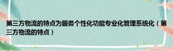 第三方物流的特点为服务个性化功能专业化管理系统化(第三方物流的特点)
