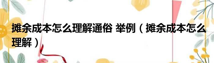 摊余成本怎么理解通俗 举例(摊余成本怎么理解)