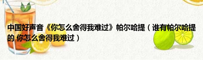 大家好,小东方来为大家解答以上的问题。中国好声音《你怎么舍得我难过》帕尔哈提,谁有帕尔哈提的 你怎么舍得我难过这个很多人还不知道,现在让我们一起来看看吧!