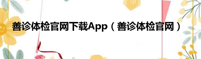 善诊体检官网下载App(善诊体检官网)