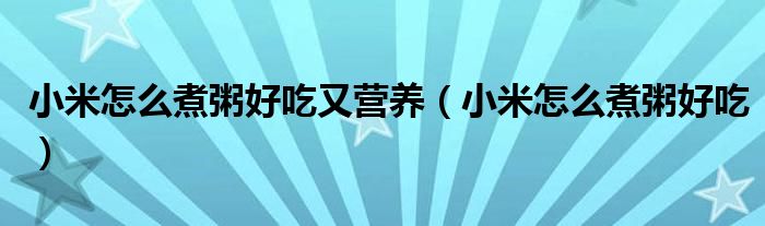 小米怎么煮粥好吃又营养(小米怎么煮粥好吃)