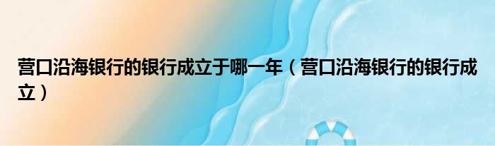 导读 大家好,小东方来为大家解答以上的问题。营口沿海银行的银行成立于哪一年,营口沿海银行的银行成立这个很多人还不知道,现在让我们一起来看看