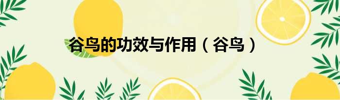 大家好,小东方来为大家解答以上的问题。谷鸟的功效与作用,谷鸟这个很多人还不知道,现在让我们一起来看看吧!