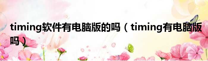 timing软件有电脑版的吗(timing有电脑版吗)