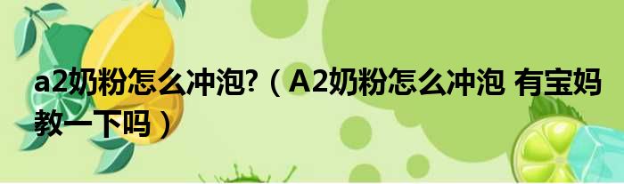 a2奶粉怎么冲泡?(A2奶粉怎么冲泡 有宝妈教一下吗)