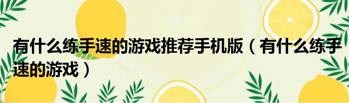 有什么练手速的游戏推荐手机版(有什么练手速的游戏)