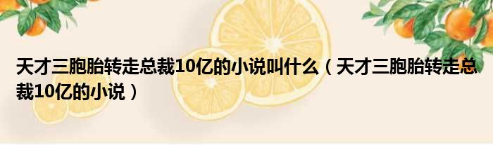 天才三胞胎转走总裁10亿的小说叫什么(天才三胞胎转走总裁10亿的小说)