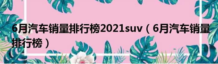 6月汽车销量排行榜2021suv(6月汽车销量排行榜)