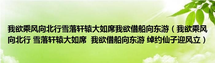我欲乘风向北行雪落轩辕大如席我欲借船向东游(我欲乘风向北行 雪落轩辕大如席 我欲借船向东游 绰约仙子迎风立)