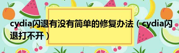 cydia闪退有没有简单的修复办法(cydia闪退打不开)