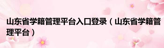 山东省学籍管理平台入口登录(山东省学籍管理平台)