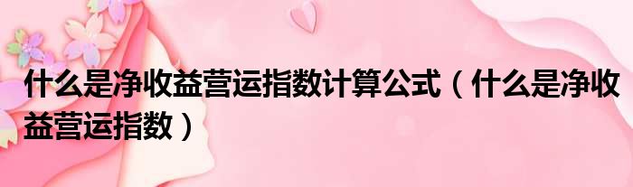 什么是净收益营运指数计算公式(什么是净收益营运指数)