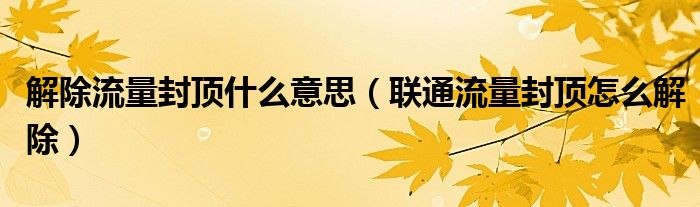 解除流量封顶什么意思(联通流量封顶怎么解除)
