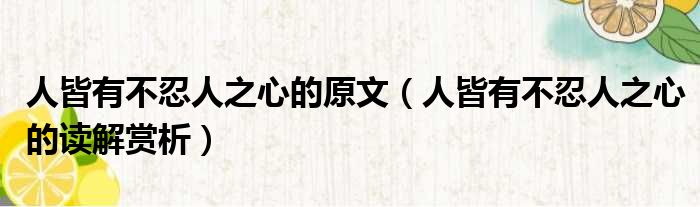 人皆有不忍人之心的原文(人皆有不忍人之心的读解赏析)