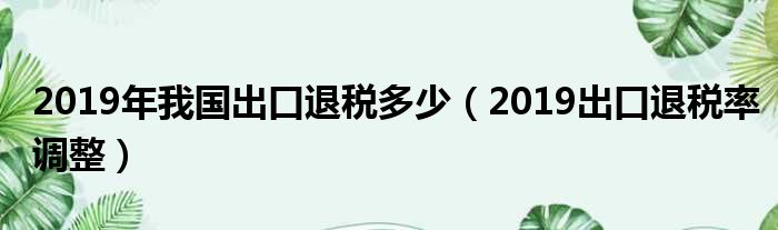导读 大家好,小东方来为大家解答以上的问题。2019年我国出口退税多少,2019出口退税率调整这个很多人还不知道,现在让我们一起来看看吧!1、本次