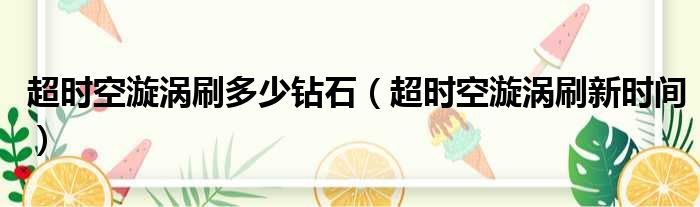 超时空漩涡刷多少钻石(超时空漩涡刷新时间)