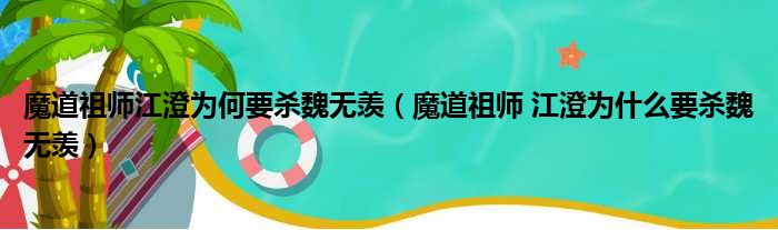 导读 大家好,小东方来为大家解答以上的问题。魔道祖师江澄为何要杀魏无羡,魔道祖师 江澄为什么要杀魏无羡这个很多人还不知道,现在让我们一起来
