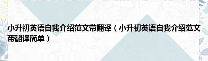 小升初英语自我介绍范文带翻译(小升初英语自我介绍范文带翻译简单)