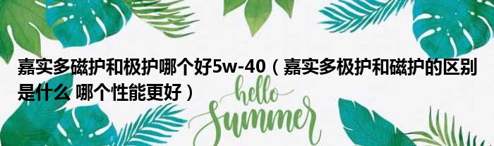 导读 大家好,小东方来为大家解答以上的问题。嘉实多磁护和极护哪个好5w-40,嘉实多极护和磁护的区别是什么 哪个性能更好这个很多人还不知道,现