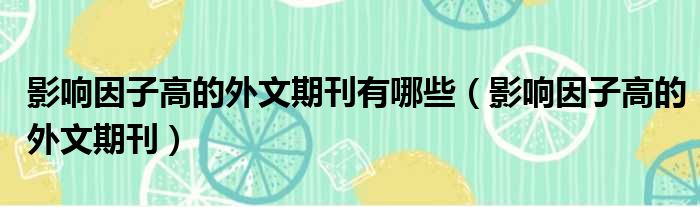 影响因子高的外文期刊有哪些(影响因子高的外文期刊)