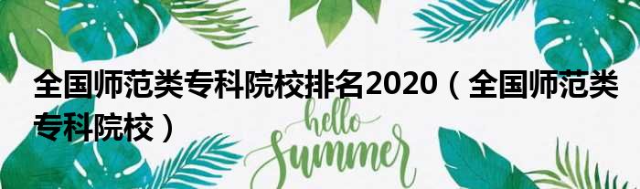 全国师范类专科院校排名2020(全国师范类专科院校)